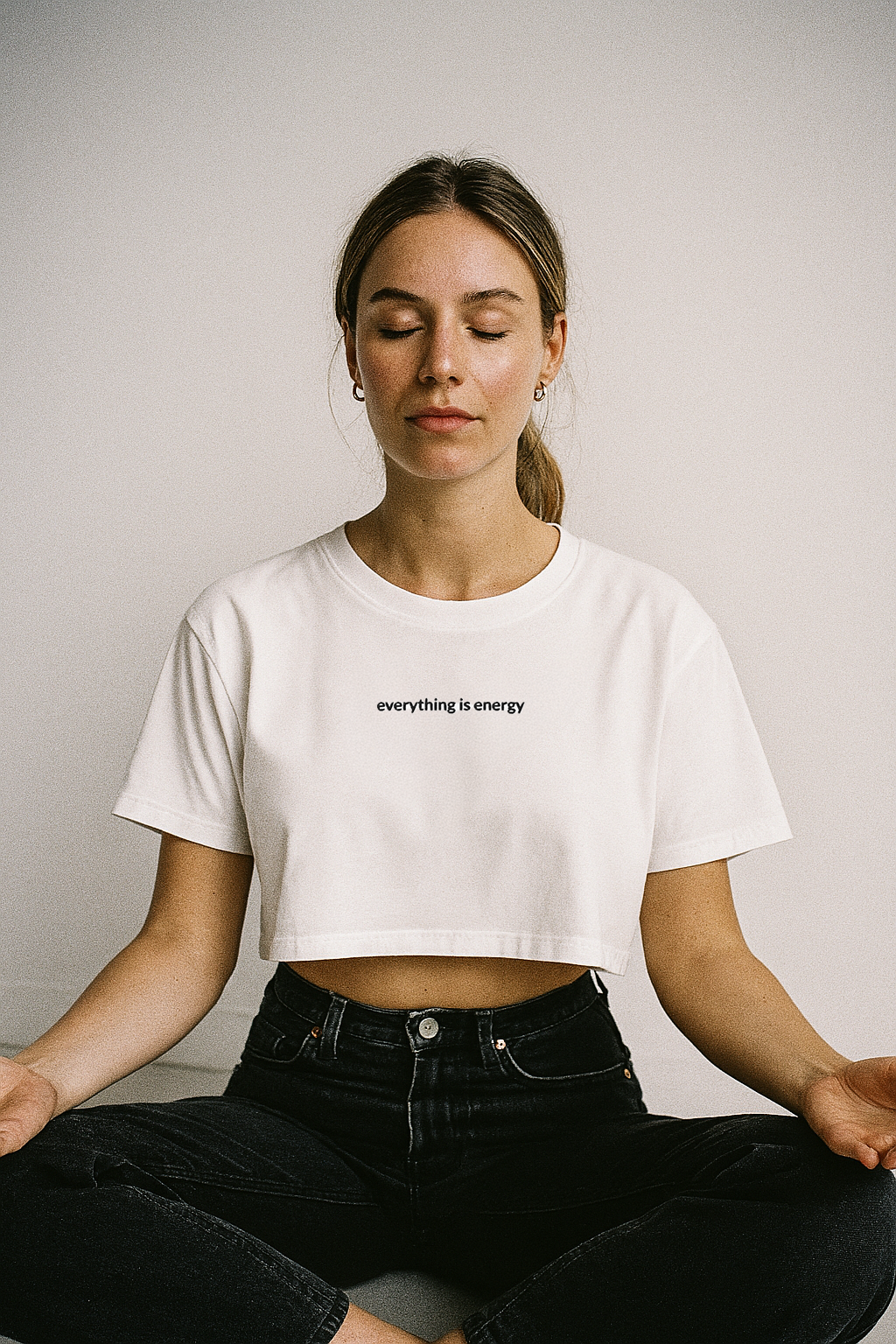 Everything is Energy Crop Tee - White Embroidered Mantra SaleEverything is Energy Crop Tee - White Embroidered Mantra